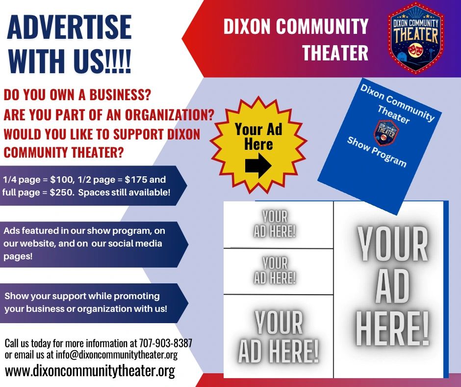 Our 1/2 page advertisements are 4 inches tall by 5 inches wide and take up approximately 1/2 of the page in the playbill. Cost = $175.00